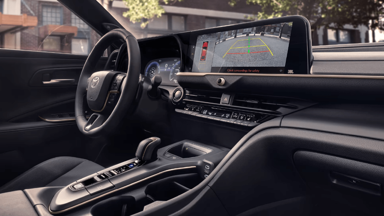 When you’re parallel parking downtown or backing out of a spot in a busy garage, Toyota Crown’s available Panoramic View Monitor uses cameras on the front, sides and rear to display a panoramic overhead view of what’s going on around you.
